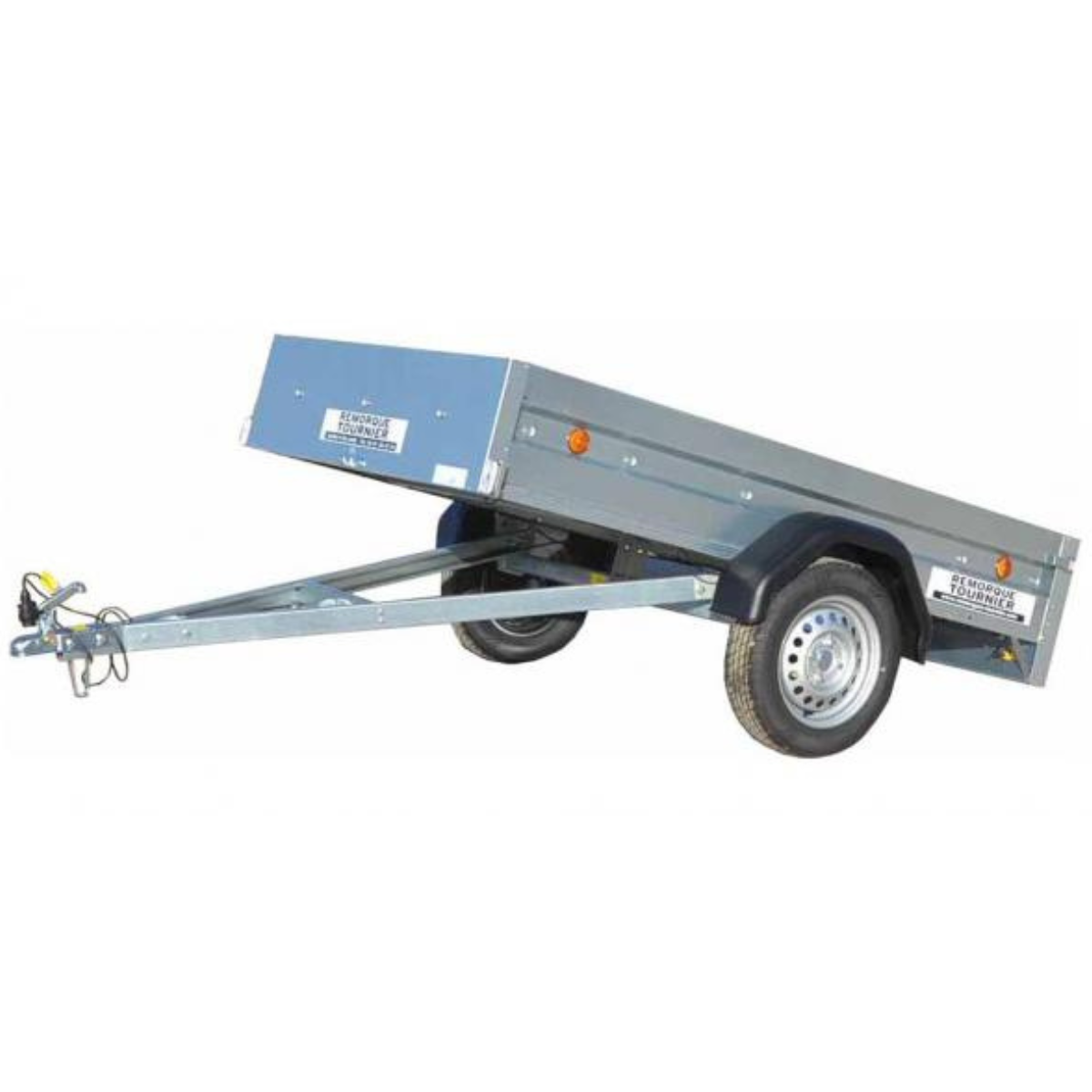 La flèche en V garantit une attache stable au véhicule tracteur, tandis que les ridelles arrière rabattables et amovibles simplifient le chargement et le déchargement des marchandises.