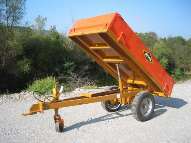 Elle dispose de ridelles rabattables et amovibles, permettant une grande polyvalence pour le transport de terre, bois, gravats ou équipements agricoles. Son freinage hydraulique complété par un frein de parking assure une sécurité maximale lors des déplacements et des arrêts, y compris sur terrains en pente.