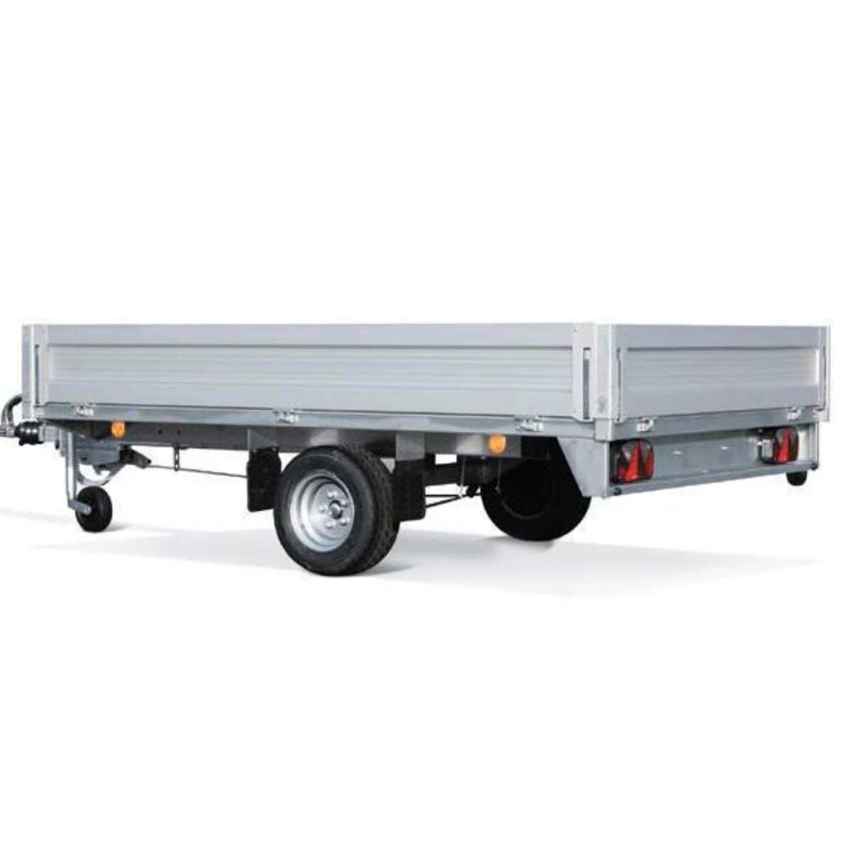 Les ridelles aluminium rabattables et amovibles facilitent le chargement et le déchargement tout en offrant la possibilité d’adapter la remorque selon la taille des objets transportés.