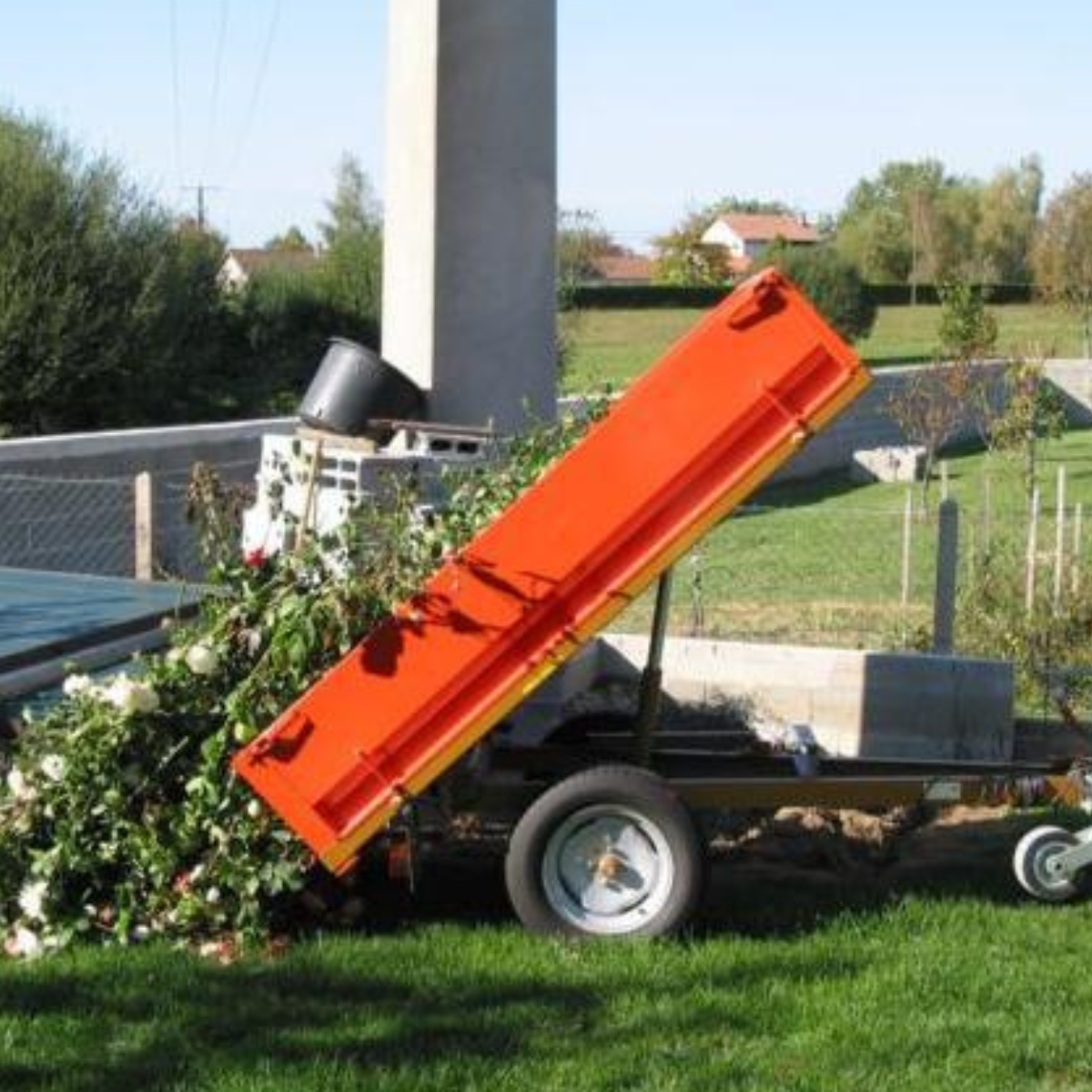 La remorque TYPE-23 pour microtracteurs allie robustesse et praticité pour le transport de charges lourdes. Elle dispose d’un basculement hydraulique via flexible, avec option de pompe à main, pour vider le contenu facilement et sans effort.